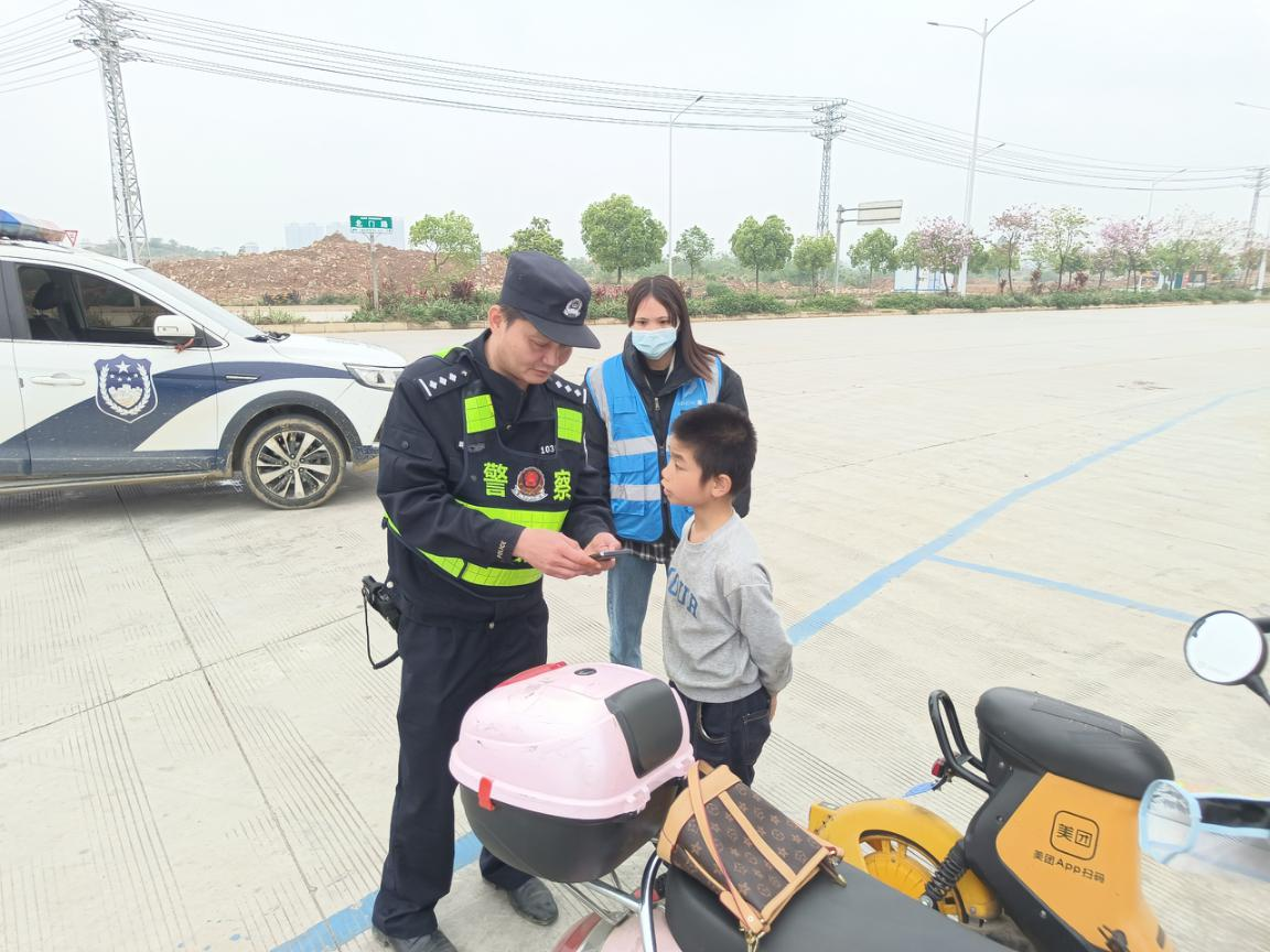 終于,孩子跑到風(fēng)情街路口停下了,甘海煥隨即找機(jī)會掉頭再次攔下孩子,并詢問孩子家長的電話,孩子也說記不清楚了,并且非常抗拒與數(shù)管采集員溝通,談話間隙間,男孩再次穿過快車道往對面的北門路跑去。甘海煥見周圍都是快車道,并且周圍環(huán)境并沒有多少人在此活動,考慮到孩子的外出安全問題,隨即撥打了報警電話,并再次騎車前往北門路跟住孩子,最后在大學(xué)美食城門口拉住孩子一起耐心等待警察的到來。最終,在紅嶺派出所的警員的幫助下,平安的把孩子送回了家。
